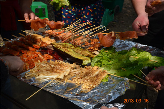 燒烤正式開始!大家分成了三個組,每個組的烤架上都有自己的招牌菜。讓我輕輕地告訴你:烤架下面還藏著噴香金黃的玉米哦~~