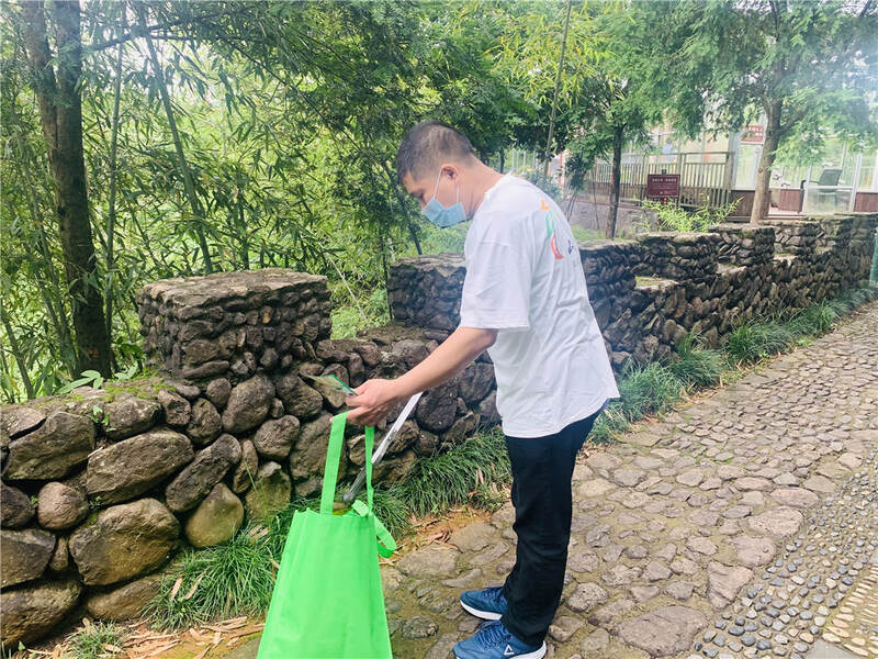 第二天,睡到自然醒的我們開啟了團(tuán)建的隱藏副本——山野清風(fēng)。大家?guī)е约旱膴A子和袋子,將被人隨意丟棄的煙頭、煙盒、塑料瓶、包裝袋等垃圾收入“囊”中,在進(jìn)行爬山這項(xiàng)有氧運(yùn)動(dòng)的同時(shí)將環(huán)保進(jìn)行到底,既呼吸了新鮮空氣,又保護(hù)了磐安美麗的風(fēng)景。