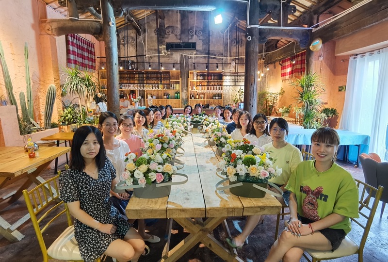 七月里甚是難得的涼爽一日,大優(yōu)訊財(cái)務(wù)部來到有“田園鄉(xiāng)夢”之稱的李祖村,領(lǐng)略了傳統(tǒng)染色工藝扎染以及手工布鞋的獨(dú)特魅力,品嘗了傳統(tǒng)制糖工藝?yán)娓嗵牵谶@里感受時(shí)光歲月賦予它的韻味。然后開始了此次團(tuán)建的重頭戲——插花。在插花過程中,大家耐心地修剪、配色,互相幫助指導(dǎo)。活動結(jié)束,大家都擁有了屬于自己性格特色的花籃,有熱情奔放派,有沉靜內(nèi)斂派,也有自然生長派……